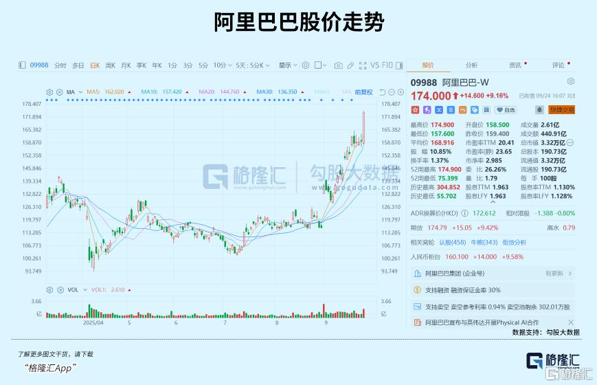 才调整没几天的各路成长赛道板块,重新又以大涨的姿态强势回归,再次验证牛市多大涨大跌的特性。 01重磅利好引爆今天半导体行情的最强导火索,莫过于今日阿里巴巴在杭州举行2025云栖大会上的重磅产品亮相,尤其宣布和英伟达在Physical AI(物理人工智能)领域达成合作。 在大会现场,全面升级的阿里云AI基础设施亮相,全面展示了阿里云从底层芯片、超节点服务器、高性能网络、分布式存储、智算集群到人工智能平台、模型训练推理服务的全栈AI技术能力。 同时,据介绍,阿里云人工智能平台PAI将集成NVIDIA Isaac Sim、NVIDIA Isaac Lab、NVIDIA Cosmos Physical AI数据集在内的全套Physical AI软件栈,结合阿里云大数据AI平台能力,形成覆盖数据预处理、仿真数据生成、模型训练评估、机器人强化学习、仿真测试在内的全链路平台支撑。 阿里巴巴集团CEO、阿里云智能集团董事长兼CEO吴泳铭表示,现通用人工智能(AGI)已是确定性事件,但这只是起点,终极目标是发展出能自我迭代、全面超越人类的超级人工智能(ASI)。“AI时代,大模型将是下一代操作系统,超级AI云是下一代计算机。目前阿里正积极推进3800亿的AI基础设施建设,阿里云将持续加大投入,迎接超级人工智能时代到来。” 受此利好刺激,阿里巴巴的港股今天大涨9.16%,股价突破至174.0港元。创下2021年8月以来的历史新高时。
