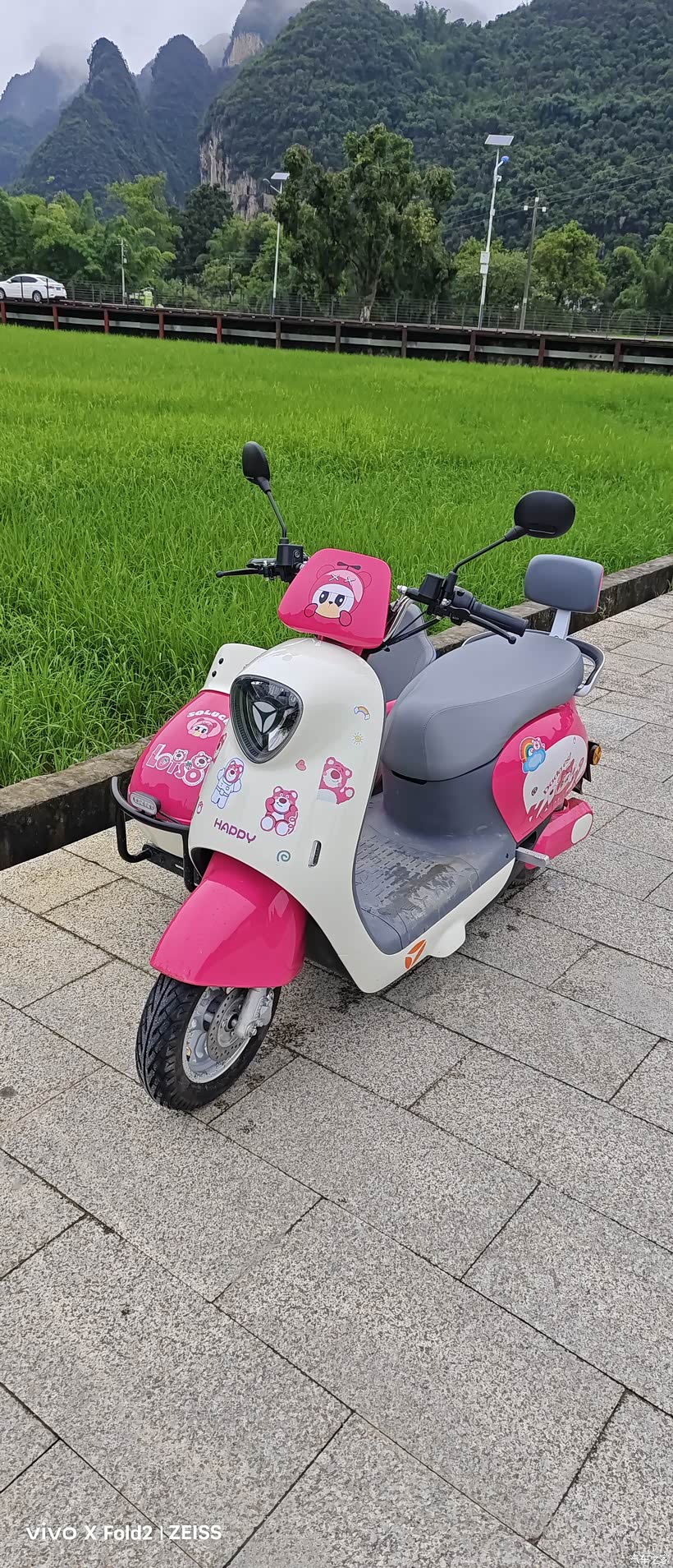 孩子特意挑了辆粉色草莓熊的