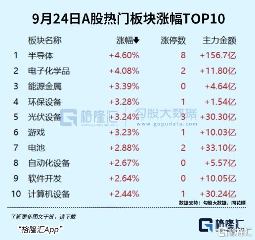 “9·24”一周年,A股、港股两市明显收涨。 截至收盘,沪指涨0.83%,深成指涨1.8%,创业板指涨2.28%,科创50指数涨3.49%。全市场共4458只个股上涨,88只个股涨停。虽然不能去年的盛况相比,但也没有辜负股民的期待。 板块中,半导体、存储芯片、光刻机、先进封装板块显著领涨,神工股份、江丰电子、兴福电子20CM涨停;电子化学品、BC电池、光伏设备等板块涨幅显著居前。