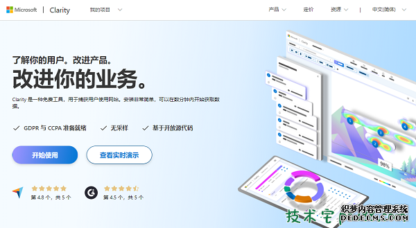 2. microsoft clarity https://clarity.microsoft.com/ 同样是大厂微软的产品,他不能说是一个统计,而是一个是分析用户行为的平台。 优点:纯免费,永久的。可以绑定谷歌的统计。 缺点:如果非要做统计用最好是绑定谷歌统计,使用有难度。