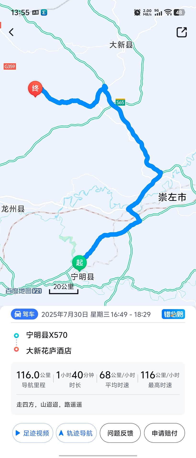 去酒店 116公里,到酒店时是晚上6点半