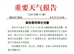 [当地资讯] 解除暴雨黄色预警!烟台市较大范围强降雨天气 日期:2025-08-18 04:20:42 点击:181 好评:0