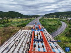 京昆高速广绵扩容工程绵阳段完成架梁 这是10月12日拍摄的京昆高速广元至绵阳段扩容工程牛头河大桥架梁作业现场(无人机照片)。 10月12日,由中铁五局承建的京昆高速广元至绵阳段...